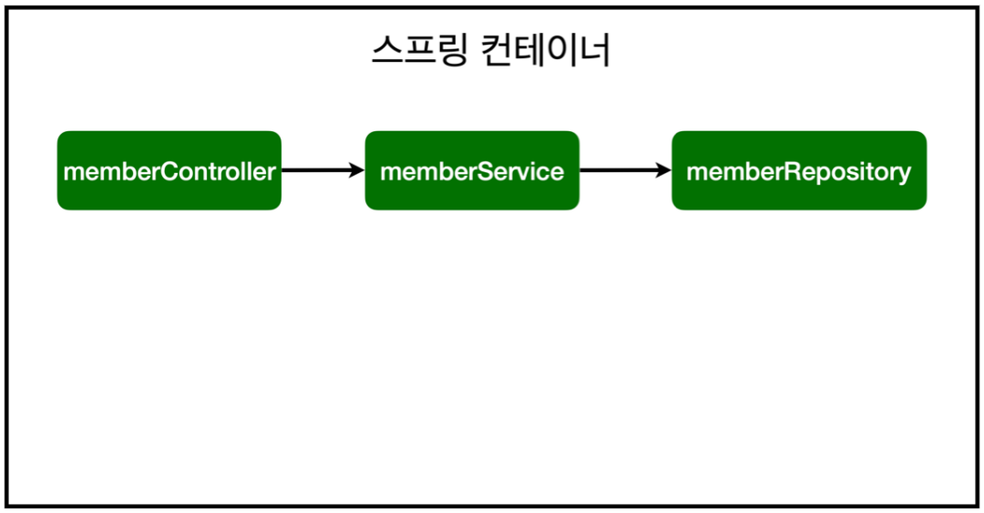 memberService와memberRepository가 스프링 컨테이너에 스프링 빈으로 등록되었다.